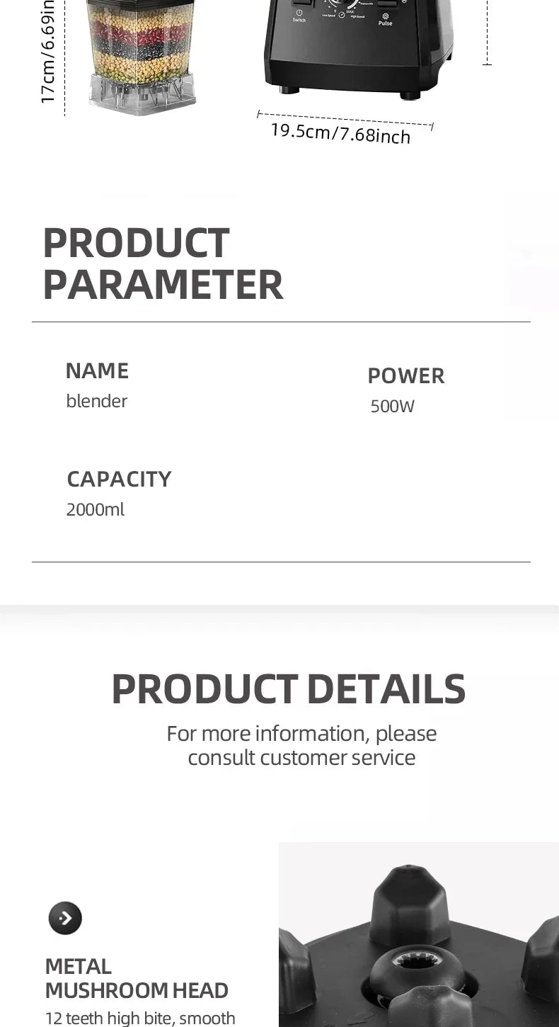 • 500W High-Power Motor – Crushes ice, fruits, and grains with strong AC7630 performance.