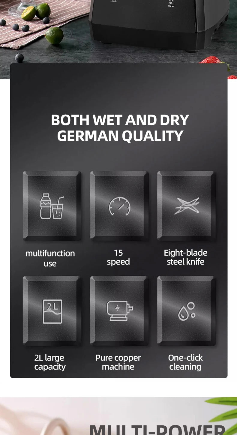 • 6-Blade Crushing System – Creates smoother, finer blends with dregs-free results.